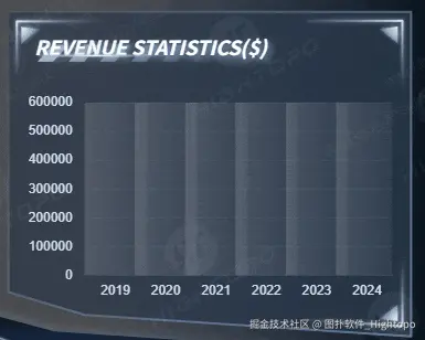 图扑 HT 图表依据时间序列整合收入数据,并以柱状图形式展示各年份的收入规模,让管理者直观地洞悉各阶段的收入表现,精准分析收入变化趋势,有效评估运营策略的实施成效。辅助管理者更加合理的规划财务、科学制定投资与业务策略,推动园区实现效益最大化与可持续运营。