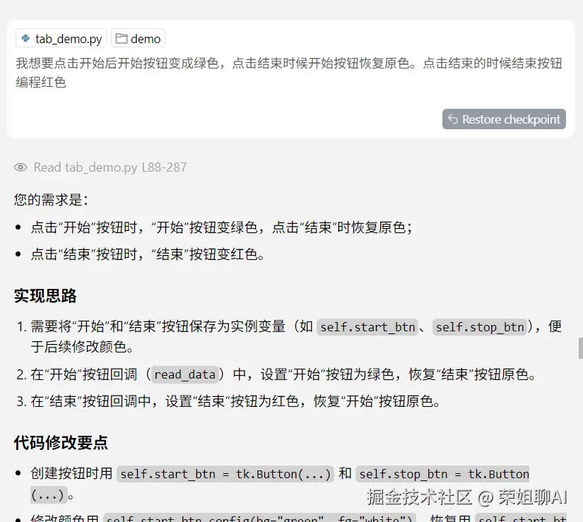 逐步实现两个按钮的功能点。只需要需求说明白,自动构造数据格式,不用自己费劲描述和组装了,标准协议还是香。