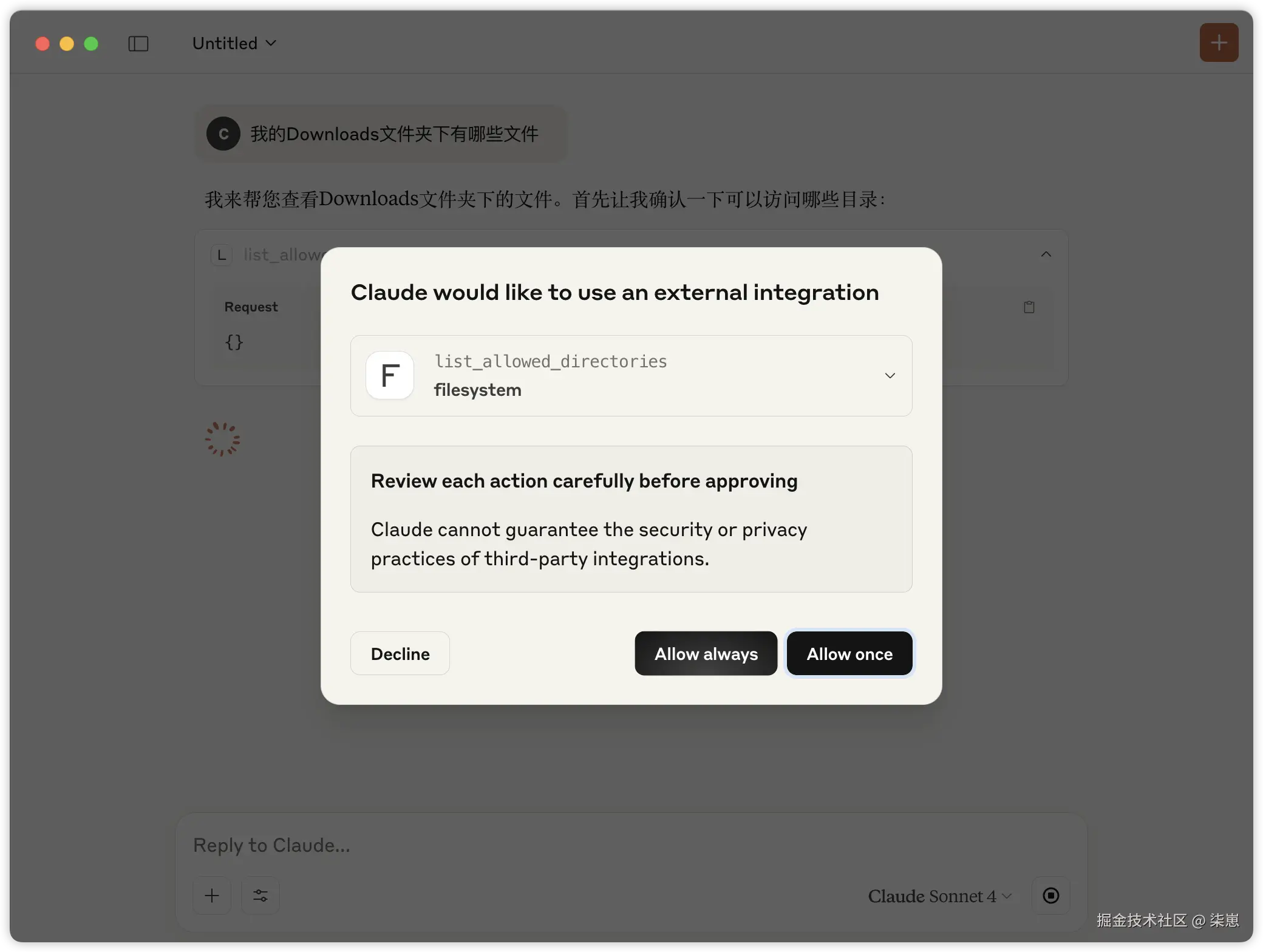 这样就会限制这个MCP服务只会操作修改我的Downloads文件夹下的文件,不会改其他的。