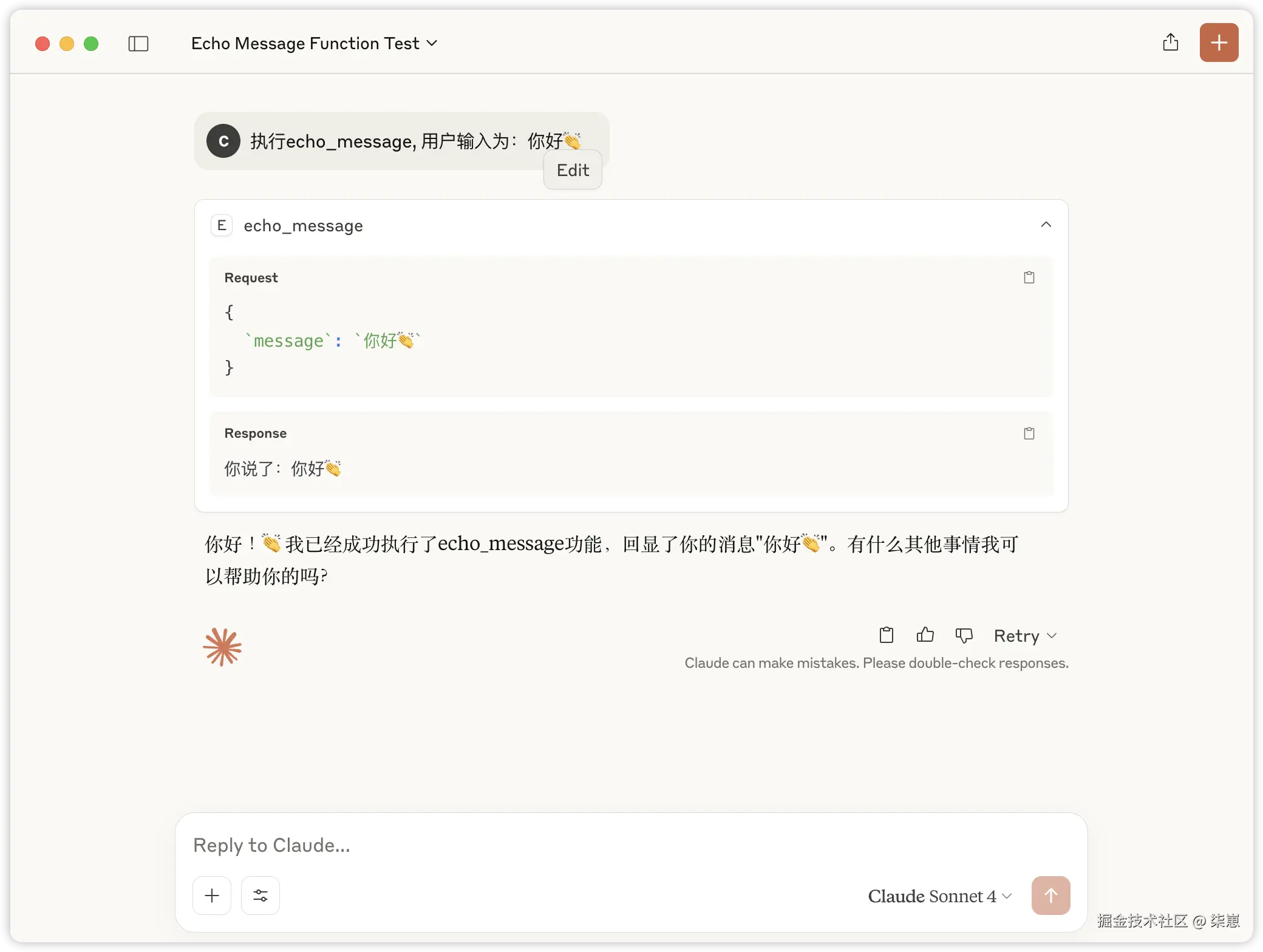 可以看到Claude执行了2个命令,然后读取到了我的本地文件。