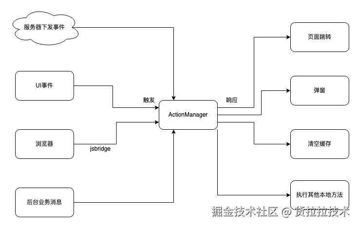 如果仅客户端使用,常用的场景可能是:当用户执行某些操作(打开某个页面、H5点击某个按钮、动态页面配置的点击事件)时,将会自动触发,执行预埋的 Action 逻辑。