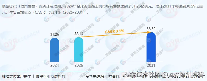 根据QYR(恒州博智)的统计及预测,2024年全球液压推土机市场销售额达到了31.26亿美元,预计2031年将达到38.59亿美元,年复合增长率(CAGR)为3.1%(2025 - 2031)。中国市场在过去几年变化较快,但原文未给出具体数据。不过,随着中国经济的持续发展和基础设施建设的不断推进,中国液压推土机市场有望保持稳定增长。