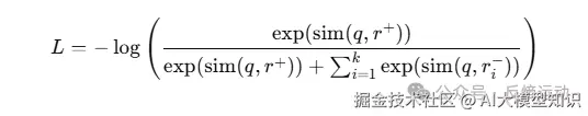 其中: q 是 query 的 embedding; r+ 是对应正样本的 embedding,r-是对应负样本的 embedding; sim 是点积(或 cosine) 这个 loss 惩罚 query 跟负样本更相似的情况,鼓励 query 跟正样本相似度更高。 训练实战 数据格式如下:response为正样本,rejected_response为负样本