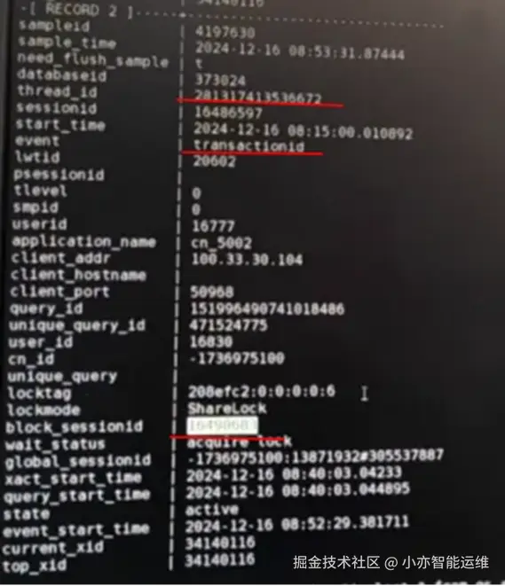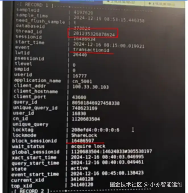 1. 日志追踪:查看DN日志确认死锁线程及互锁关系。通过gs_asp工具定位线程对应的unique_query_id(471524775 与 748623169)。