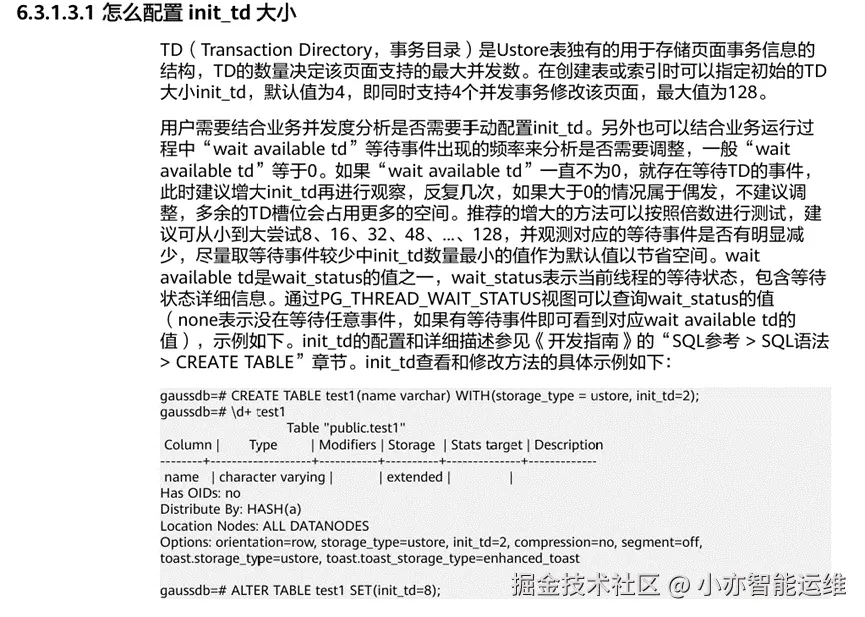 详情具体参考《特性指南》的“存储引擎 > Ustore存储引擎 > Ustore简介>Ustore的最佳实践 > 怎么配置init_td大小 ” 章节