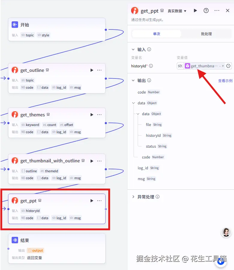 - 插入“get_ppt”工具节点
