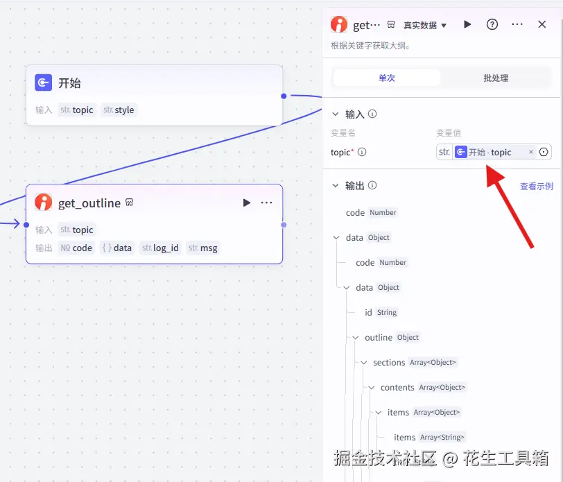 - 添加“get_outline”工具节点