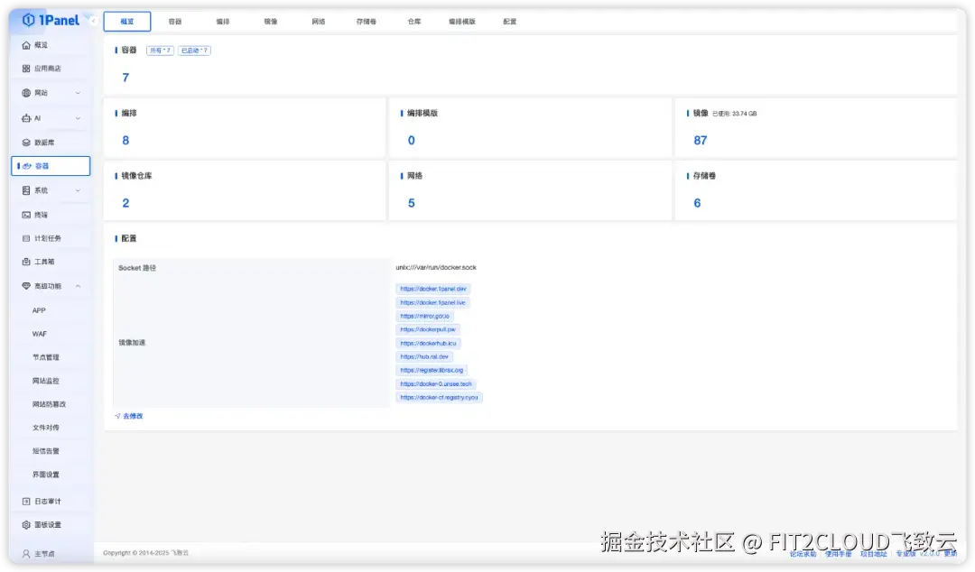 容器管理方面,1Panel V2版本新增容器的“概览”页面,方便用户实时查看容器运行状态。同时,支持更多的容器自定义参数配置,满足复杂部署的需求。
