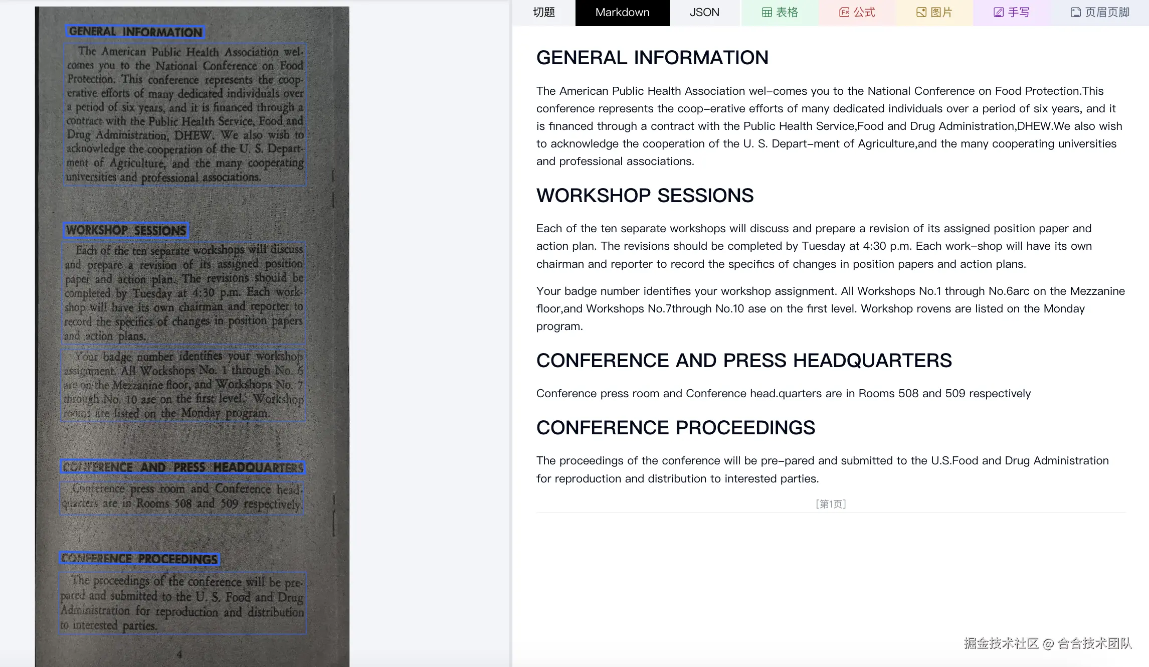 上图为弯曲样本,同时光线较暗,解析结果需要正确识别文本与标题。