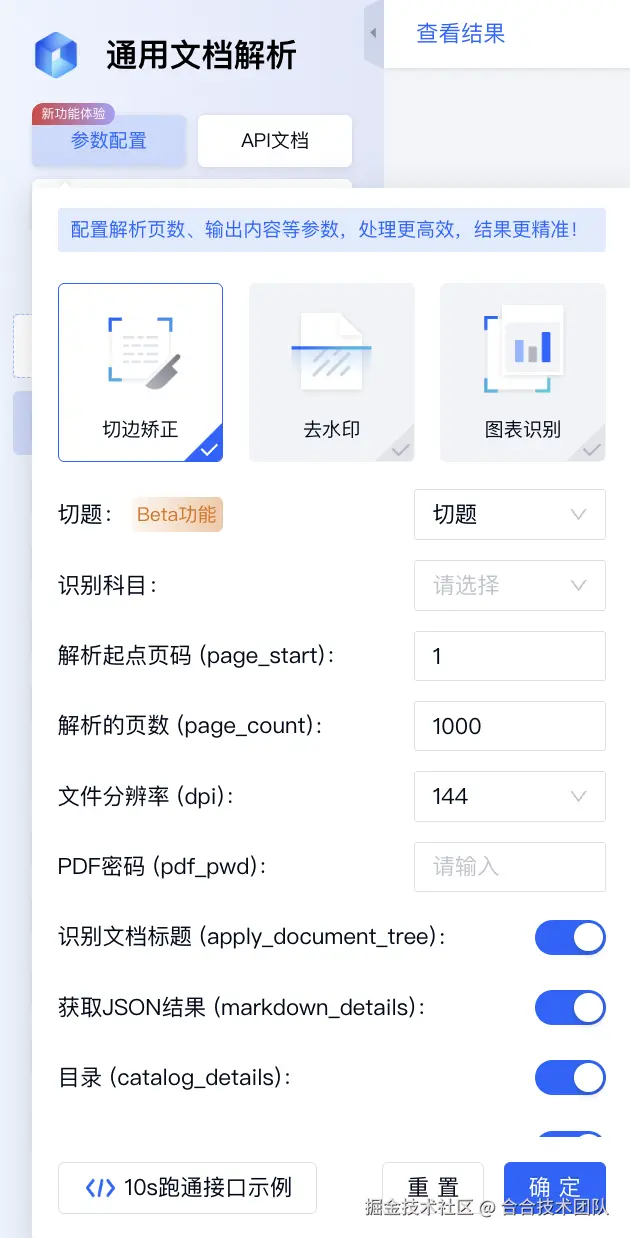 在 TextIn xParse 参数配置栏勾选【切边矫正】,提升拍摄角度不正或歪曲变形的照片的识别效果。