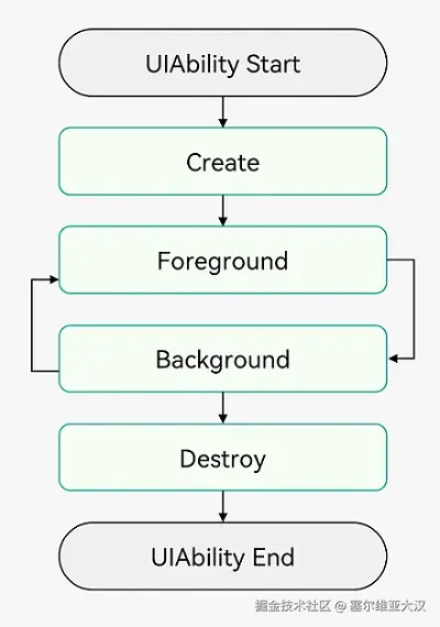 UIAbility的生命周期包括Create、Foreground、Background、Destroy四个状态,如下图所示。