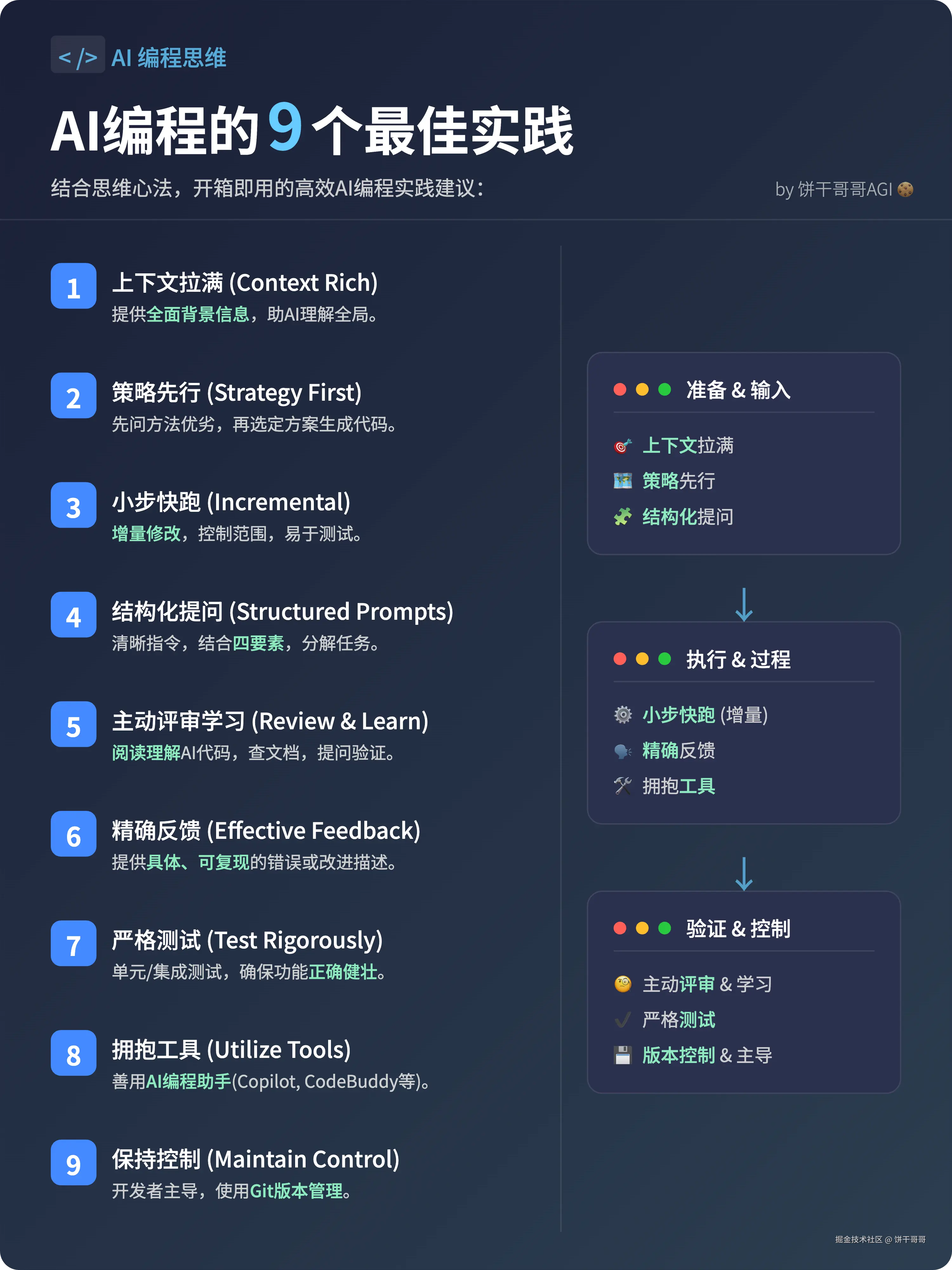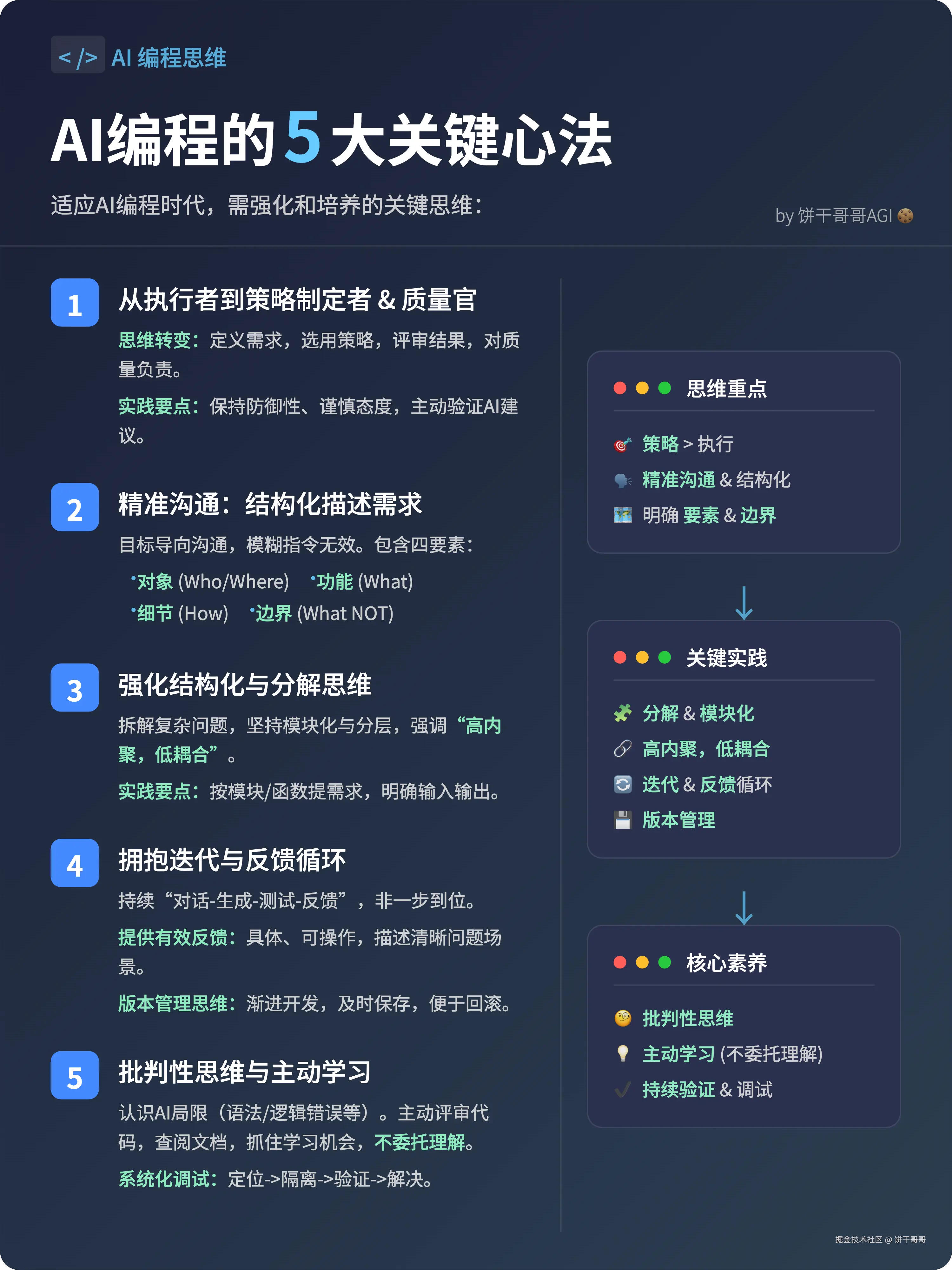 今天饼干哥哥🍪就跟大家分享一下5大AI编程思维与9个最佳实践建议