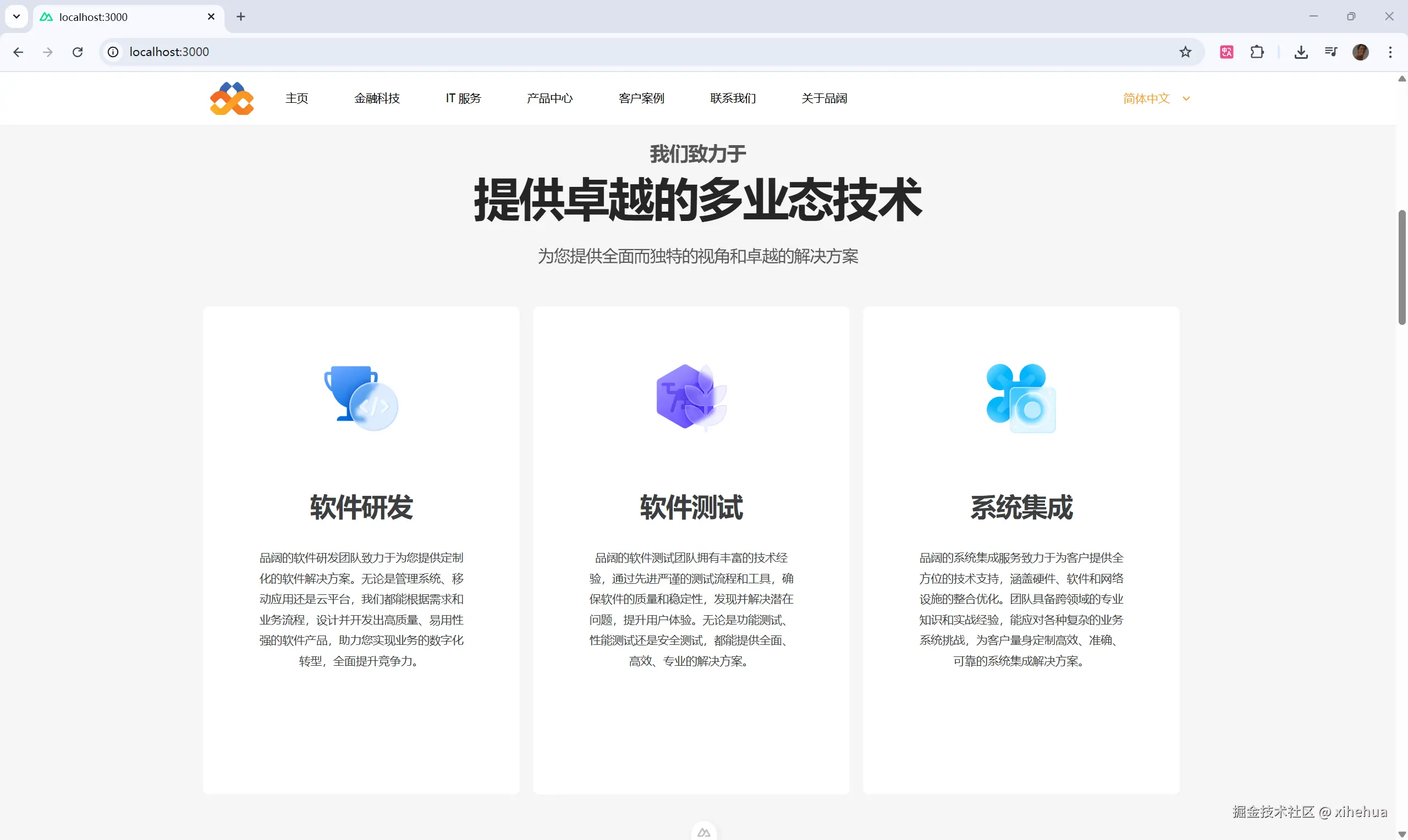 现在在浏览器打开 http://localhost:3000/ 就会看到项目了