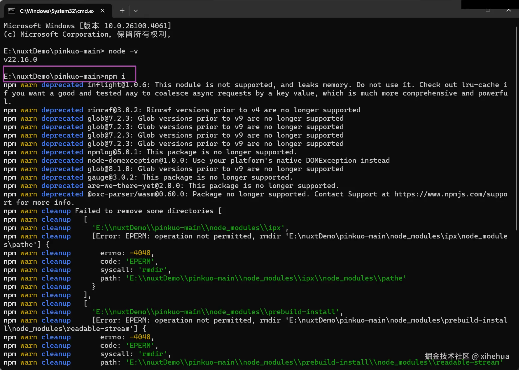 接下来 输入 npm i 然后按 回车键 就可以 初始化一下项目