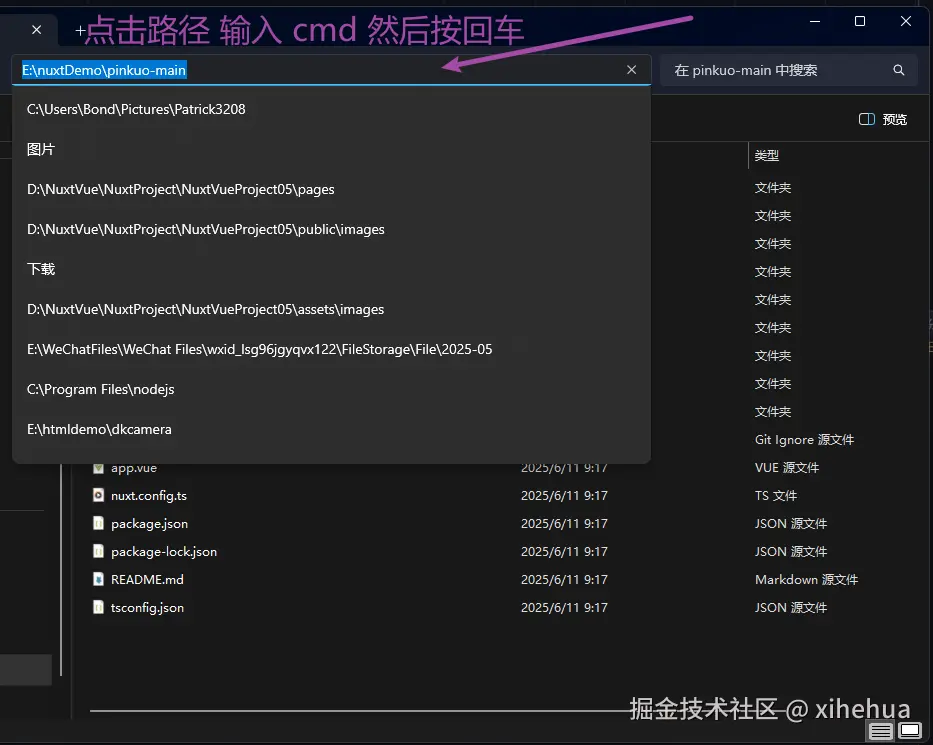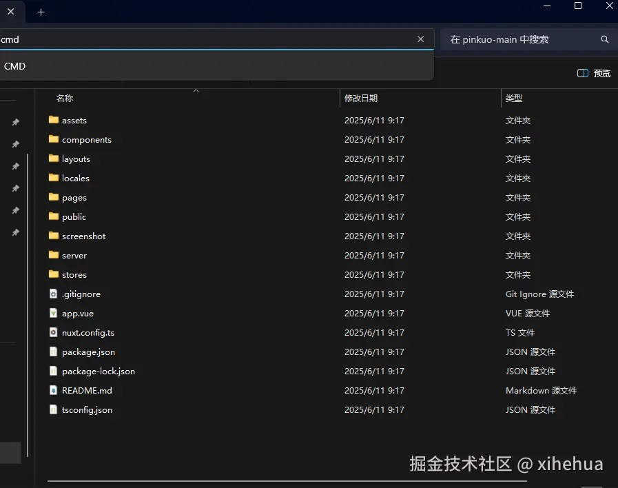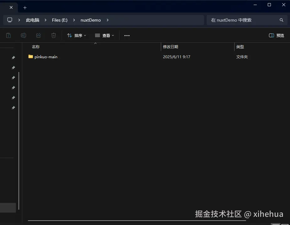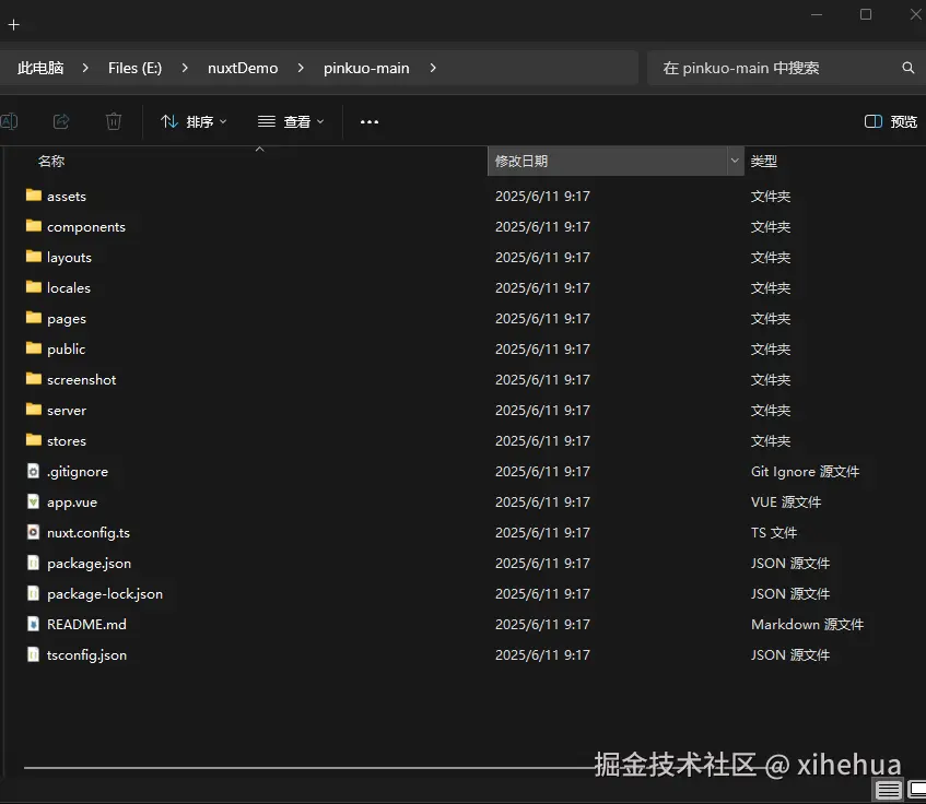 2. 下载文件后 解压 内容如下 ,我的文件夹路径是 E:\nuxtDemo