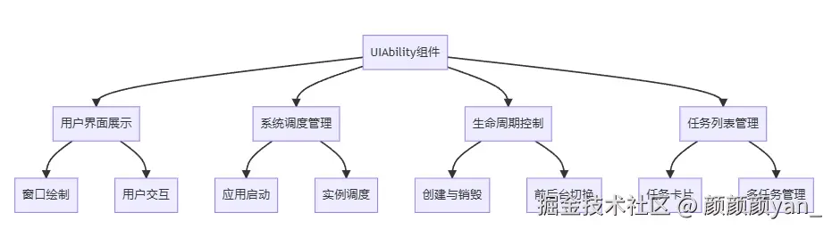 UIAbility组件是HarmonyOS Stage模型的核心组件,它不仅仅是一个界面容器,更是应用生命力的体现。在Stage模型的设计哲学中,UIAbility承担着以下关键职责: