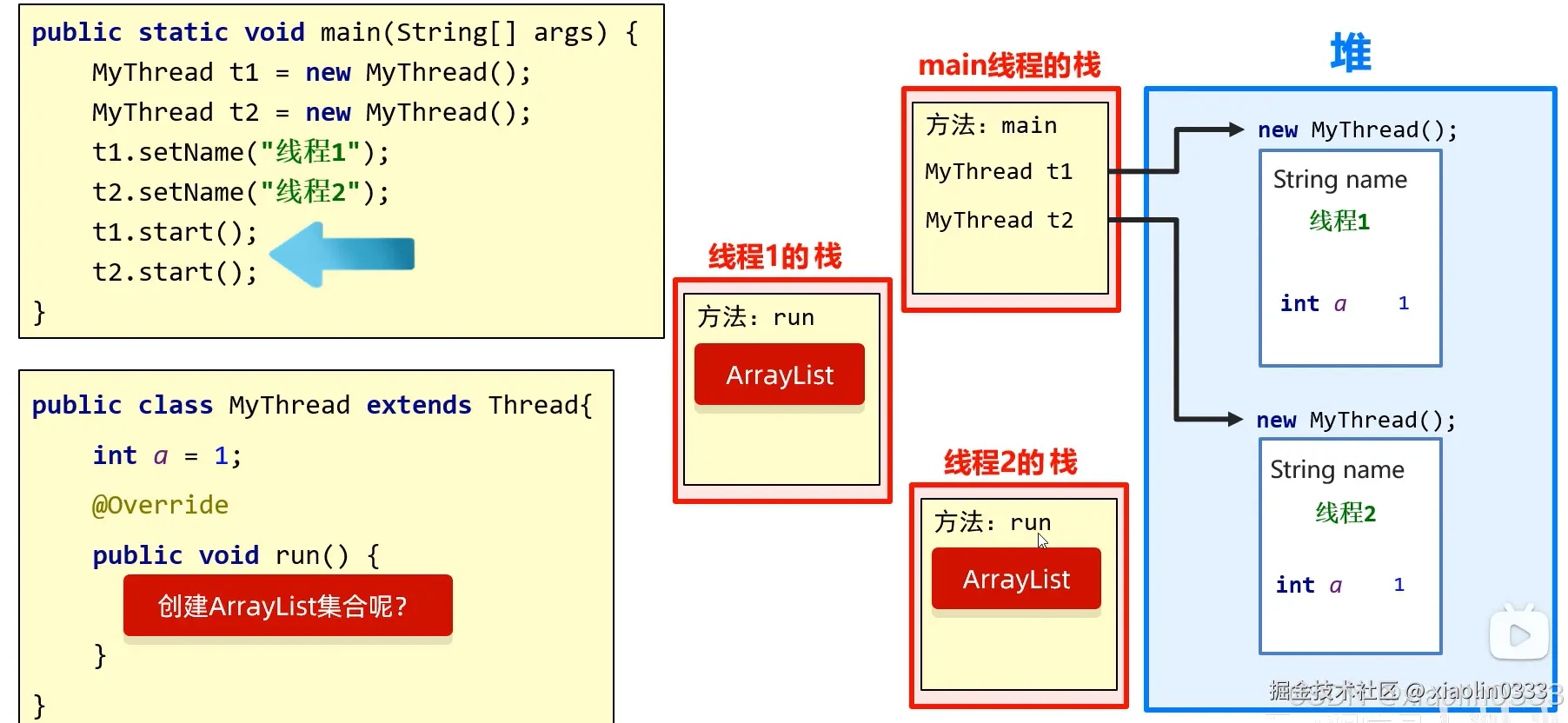 线程1和线程2的run()方法里的存储空间是相互独立的。