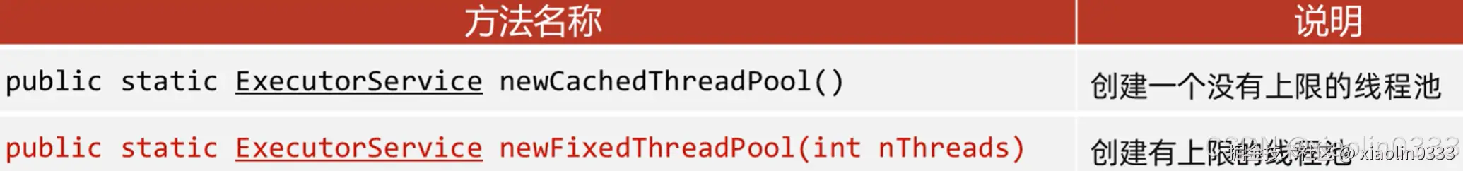 Executors:线程池的工具类,通过调用方法返回不同类型的线程池对象