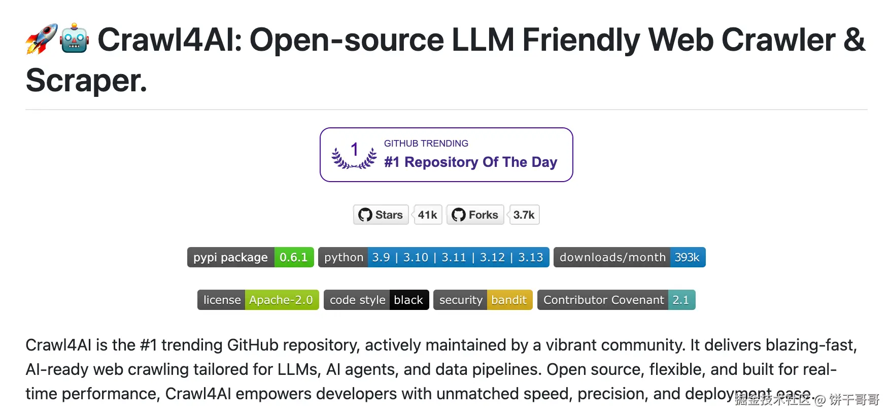 - 快速原型验证: 在不确定网站结构或不想花时间分析HTML时,可以尝试使用crawl4ai进行快速的数据抓取。