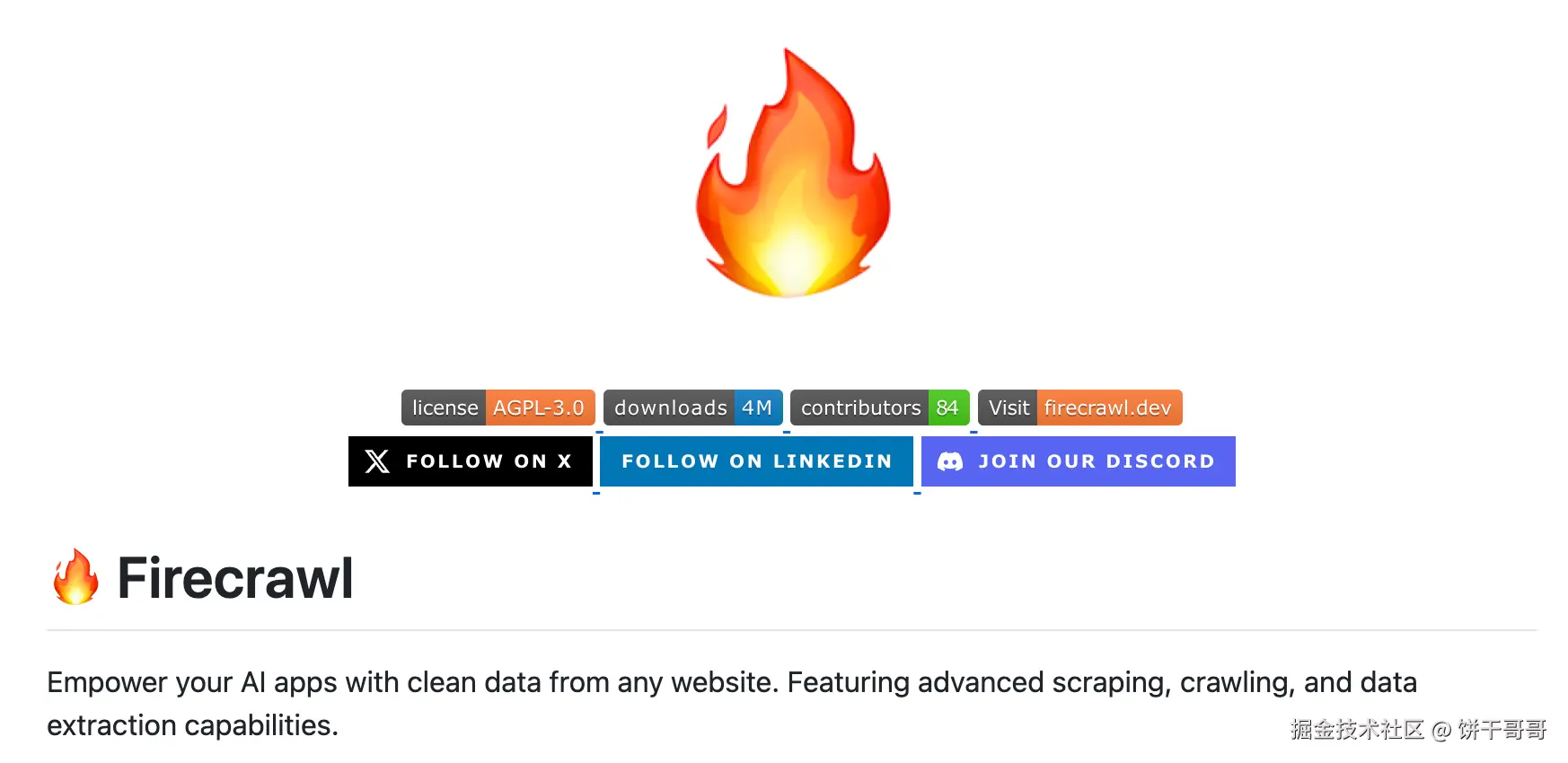 一个“将任何网站转化为LLM就绪(LLM-ready)的干净Markdown/结构化数据”的工具。它不仅能抓取单个页面,还能进行网站范围内的爬行,并将抓取到的内容处理成适合大型语言模型(如GPT系列、Claude等)直接使用的格式。