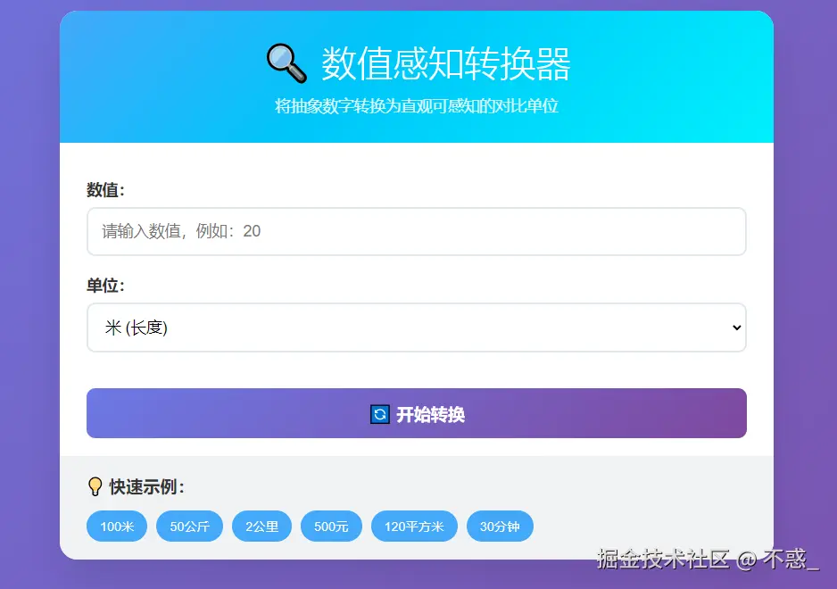 这时候,如果有个工具,能帮你把这些数字转换成身边熟悉的东西,瞬间能“感知”到数字的大小,感觉会方便很多。于是我们就做了这个“数值感知转换器”,帮你把抽象数字换算成具体事物的大小,立马能在脑海里浮现画面。