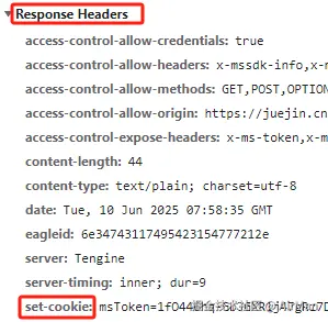 - 服务器将 Cookie 设置在响应头中的 set-cookie 字段中,然后发送响应