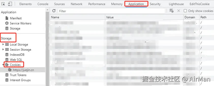 另外为了让浏览器请求的时候自动携带 Token ,所以当登录请求完成后,前端就会将 JWT 令牌存储在浏览器本地。