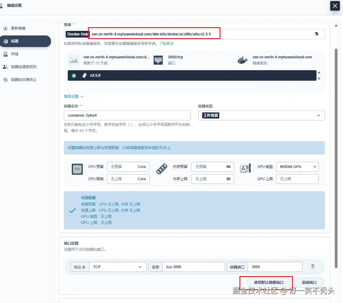 直接使用默认的容器镜像端口即可