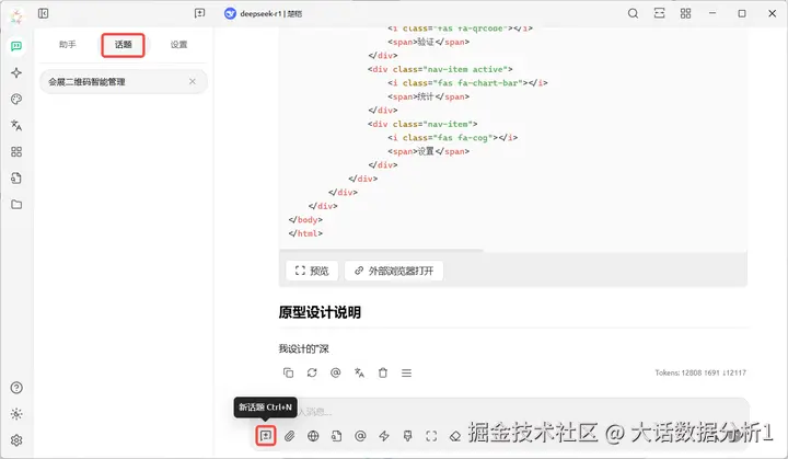 点击新建话题,每一个话题代表一个完整的上下文聊天,在同一个话题内聊天,会携带历史的聊天记录来跟AI进行对话,可设置携带上下文的长度。