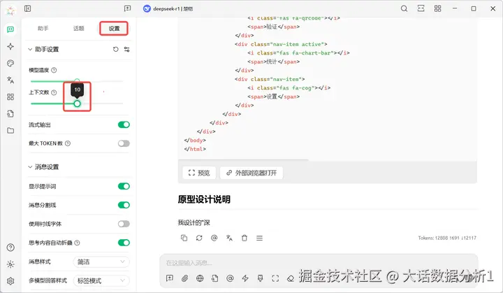 在设置中调整携带历史消息的长度,上下文越高,携带的历史消息更多,模型响应更慢、消耗token更高,上下文低,聊天轮数过多后,模型可能“忘记”一开始的要求