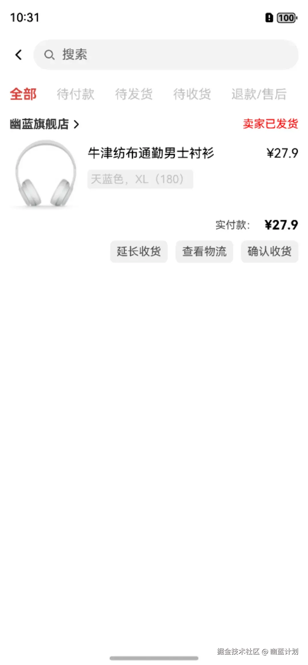 最后是订单列表部分,很明显是一个List组件,依然使用layoutWeight占满剩余屏幕。然后店铺名字和发货状态部分使用List的header来实现,