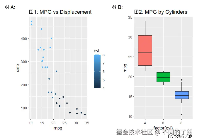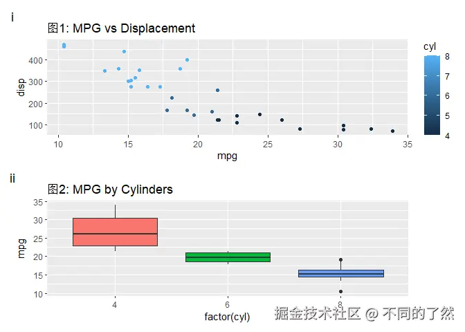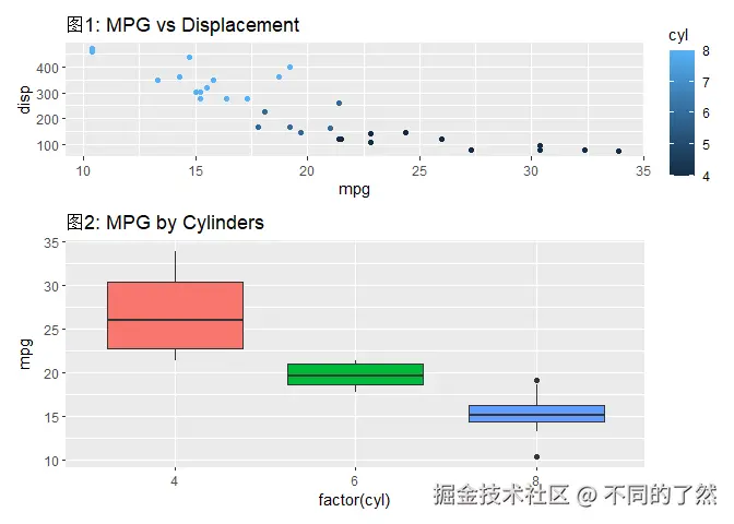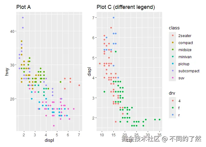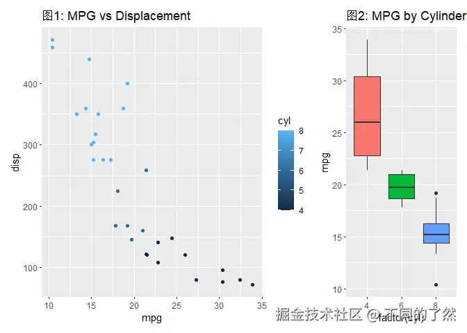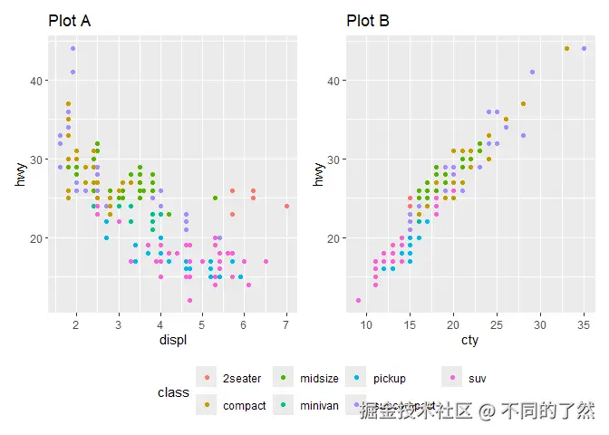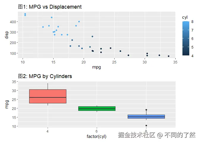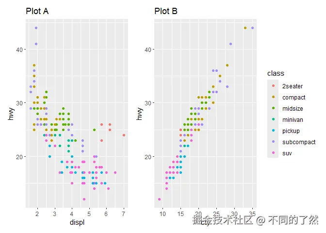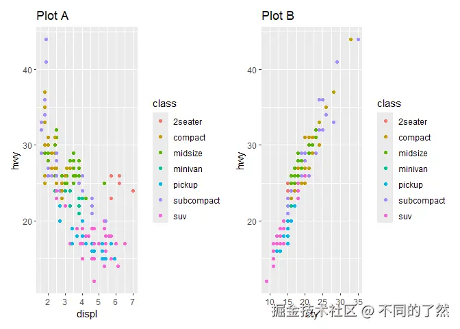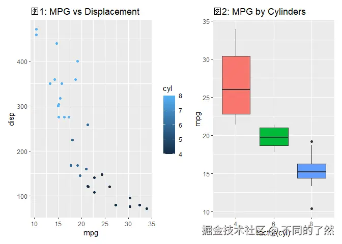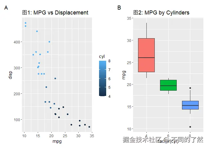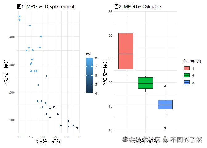 # & labs(...): 将 X 和 Y 轴标签应用到 p1 和 p2 (如果它们有这些美学映射)。
