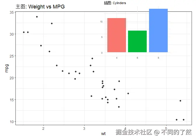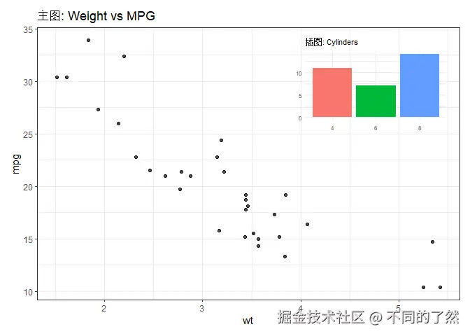 ggtitle("主图: Weight vs MPG") +