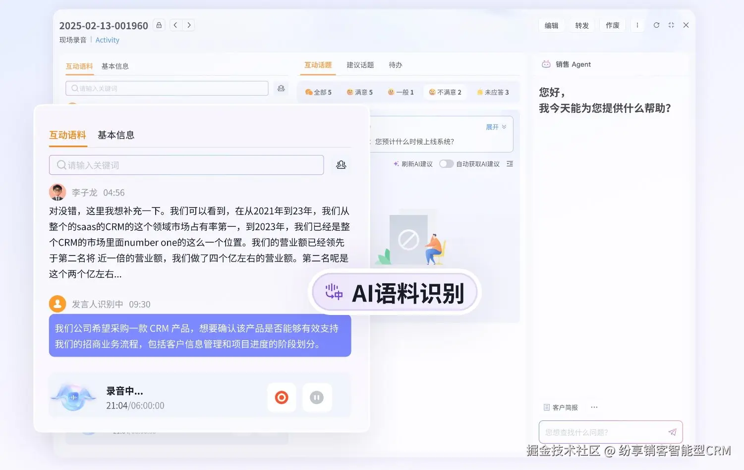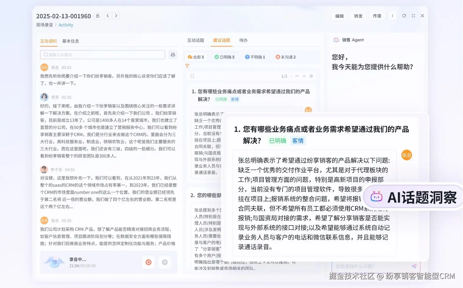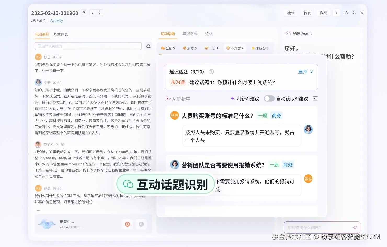 纷享销客作为智能 CRM 创领者,将 AI 技术深度嵌入 CRM,围绕客户互动场景推出【客户互动 Agent】。