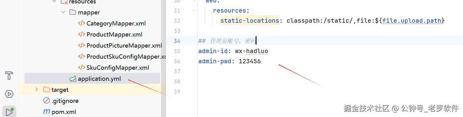 打开resources目录, 修改 application.yml 配置文件,主要修改下面几个信息: