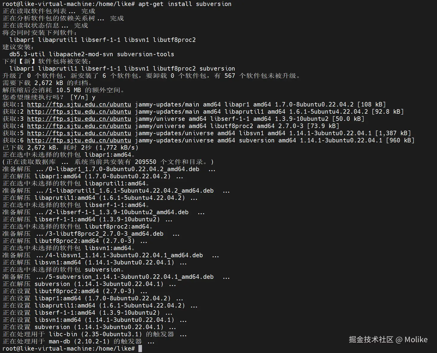 在Ubuntu服务器上部署SVN Server,直接安装,没有用Docker。