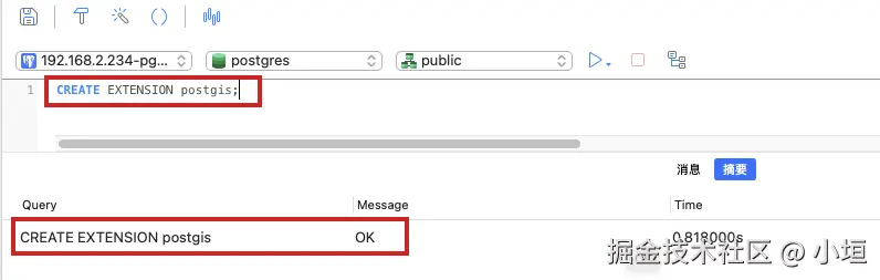 验证postgis是否安装成功