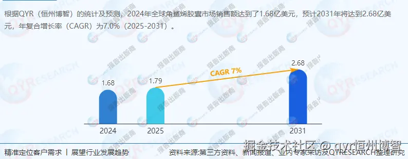 角鲨烯胶囊是一种以角鲨烯(Squalene)为核心成分的膳食补充剂,具有抗氧化、免疫调节及心血管保护等功效,广泛应用于保健品、营养品及功能性食品领域。根据QYResearch数据,2024年全球角鲨烯胶囊市场规模达1.68亿美元,预计2031年将增至2.68亿美元,2025-2031年复合增长率(CAGR)为7.0%。中国市场虽未明确具体份额,但近年来增速显著,预计2031年全球占比将提升至X%(需补充具体数据)。