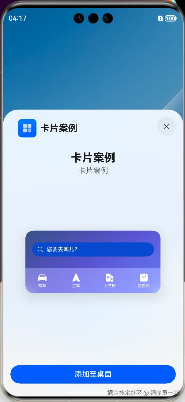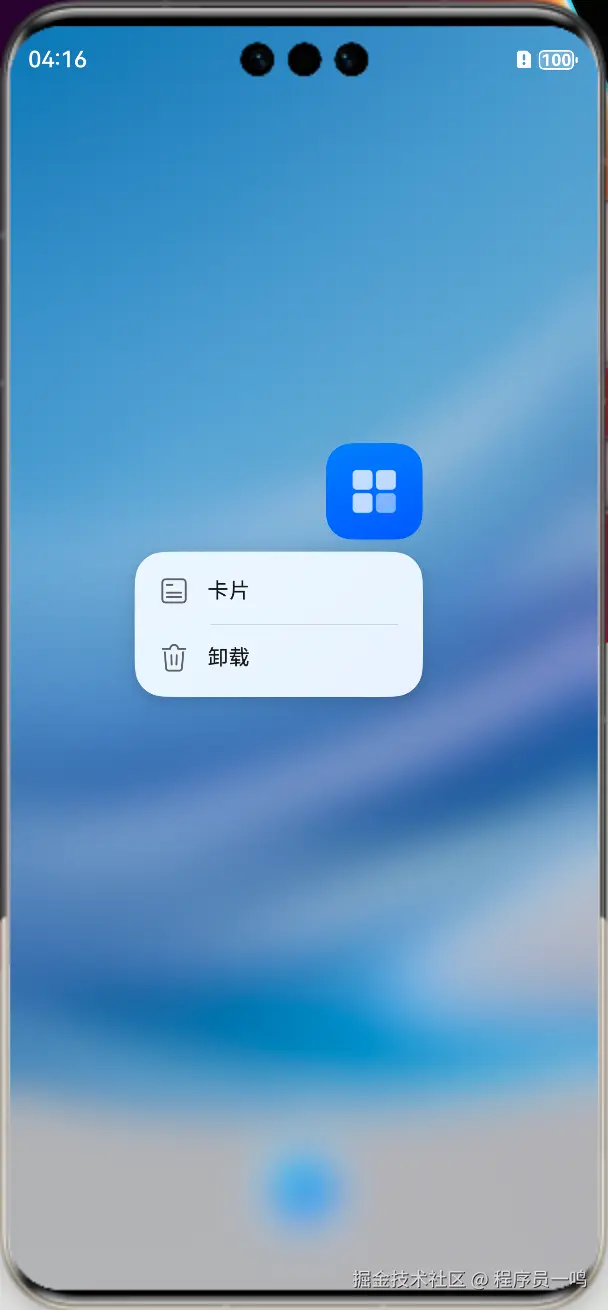 触发方式也是十分的简单,无论你是Android、iOS还是HarmonyOS,只要已经适配了这个功能,在桌面长按应用图标,就可以进行添加小部件/小组件/卡片功能,毕竟,我们是鸿蒙相关的文章,重点就以鸿蒙系统的效果进行展示了。