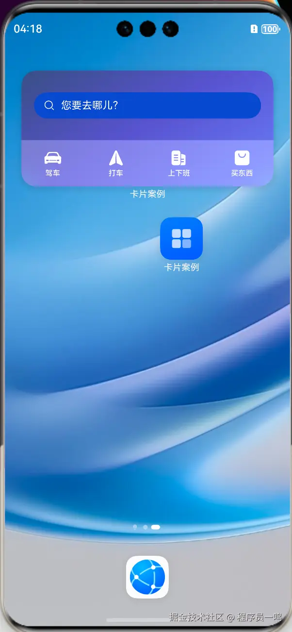 如下的案例,目前已经开发了卡片功能,我们长按桌面图标之后,就会显示卡片的功能: