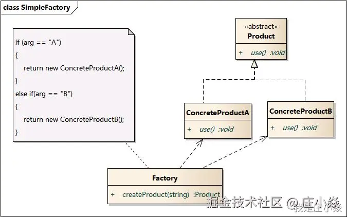Product product = SimpleFactory.createProduct("A");
