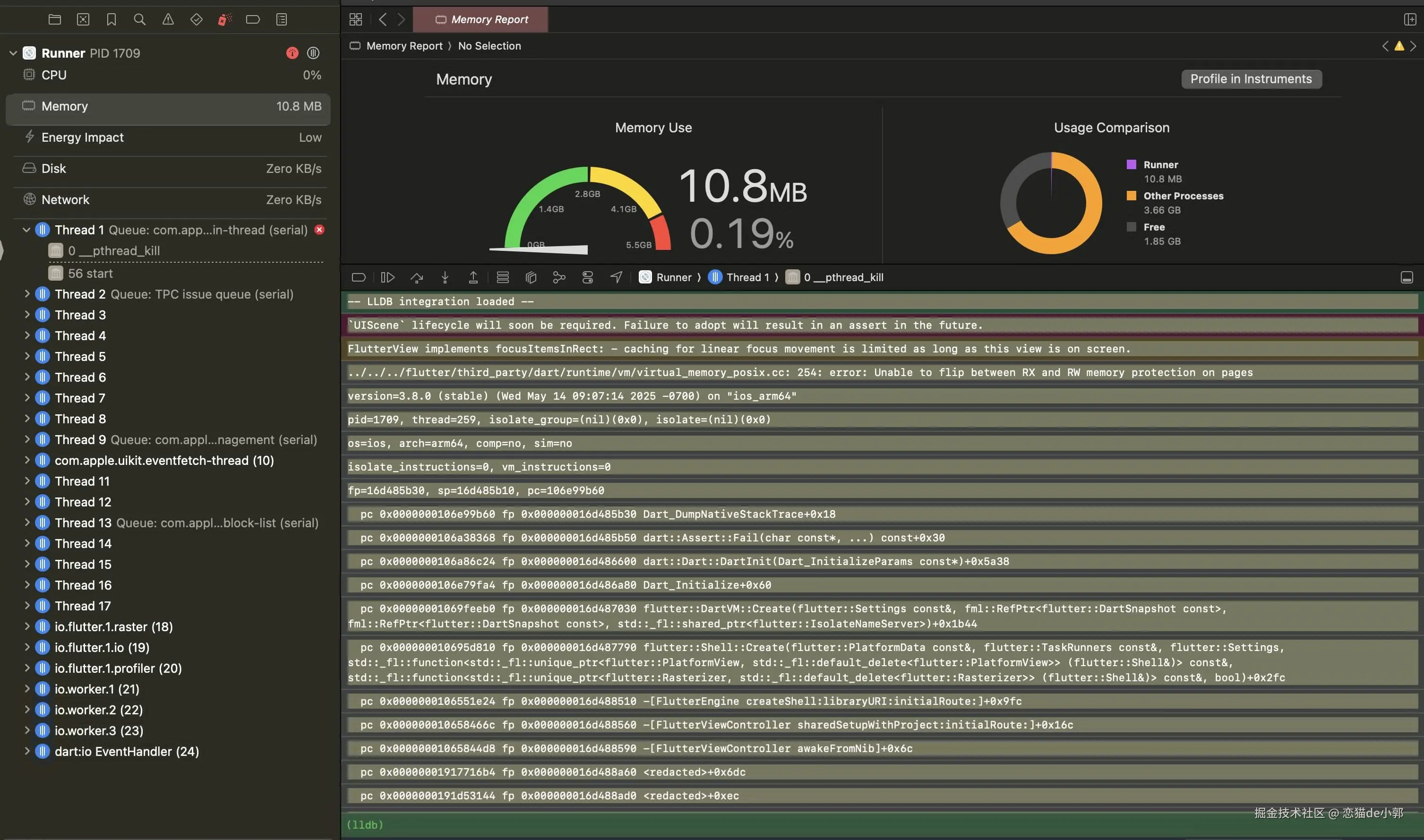在之前的 《Flutter iOS 大坑超汇总》我们聊过 iOS 18.4 beta mprotect failed: Permission denied 的问题,在 iOS 18.4 beta1 的时候, debug 运行会有 Permission denied 的相关错误提示,问题其实就是 Dart VM 在初始化时,对内核文件「解释运行(JIT)」时出现权限不足的问题。