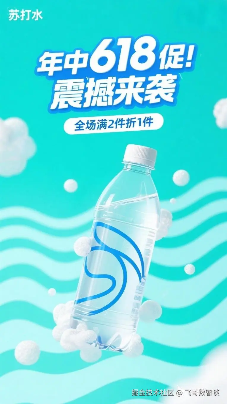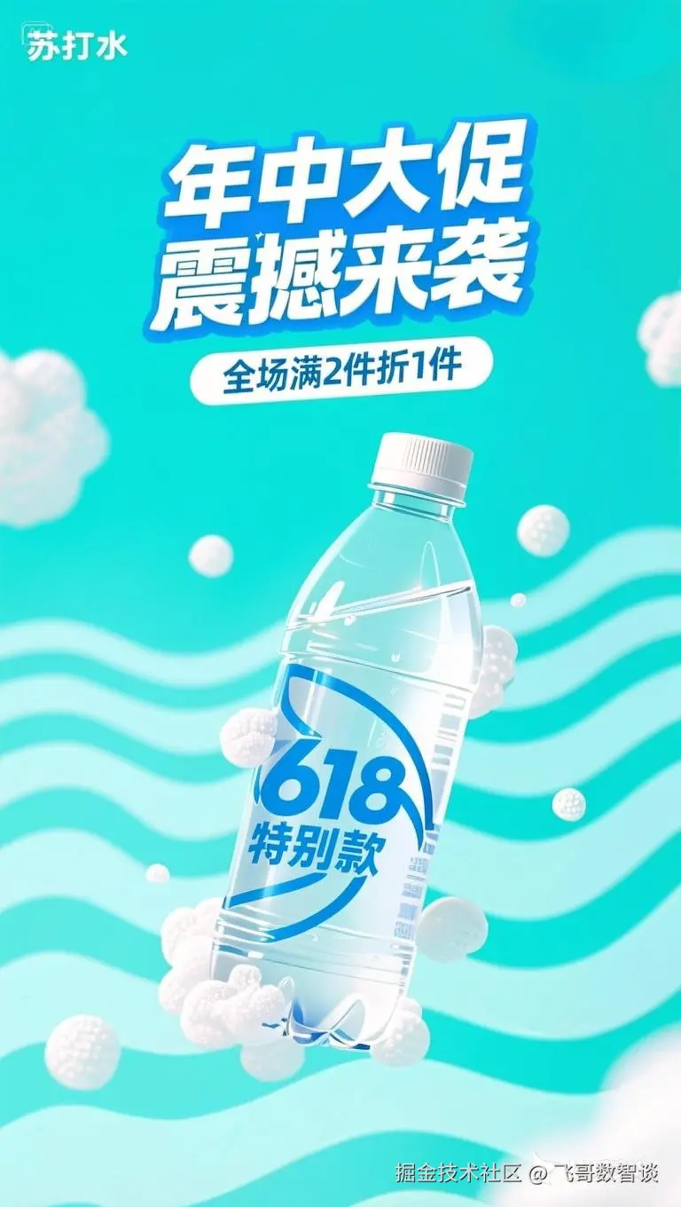 上部文字更改为“年中大促,震撼来袭”,并在瓶身印上“618特别款”