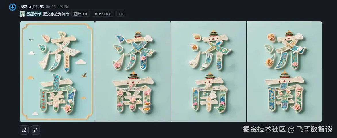 提示词:“把文字变为济南”。