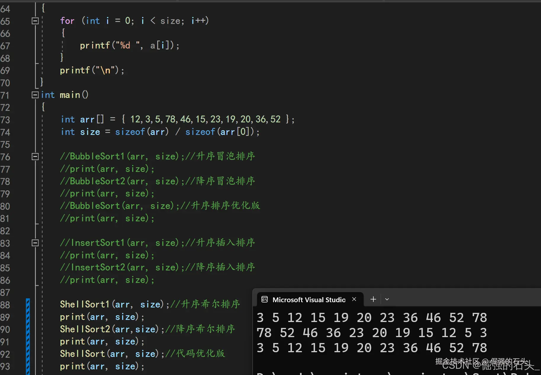 中等规模数据集:对于小到中等规模的数据集(比如几千个元素),希尔排序通常能够提供良好的性能。在这些情况下,希尔排序可能比更复杂的排序算法(如快速排序、归并排序等)更容易实现且效率相当。