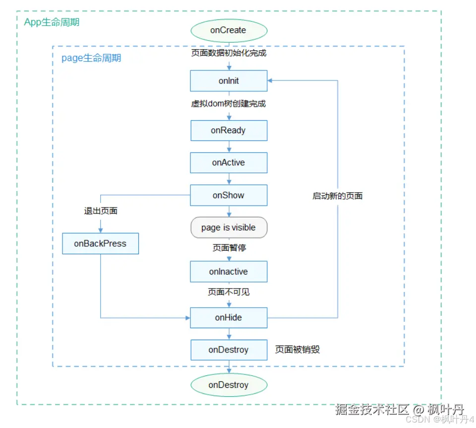 - 页面从后台运行恢复到前台:onShow() -> onActive()
