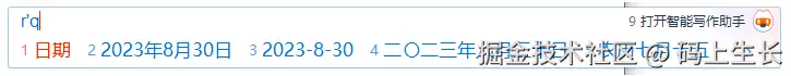 使用搜狗输入法,在中文模式下,输入 rq ,则会自动显示日期格式 年月日 ,如下所示: