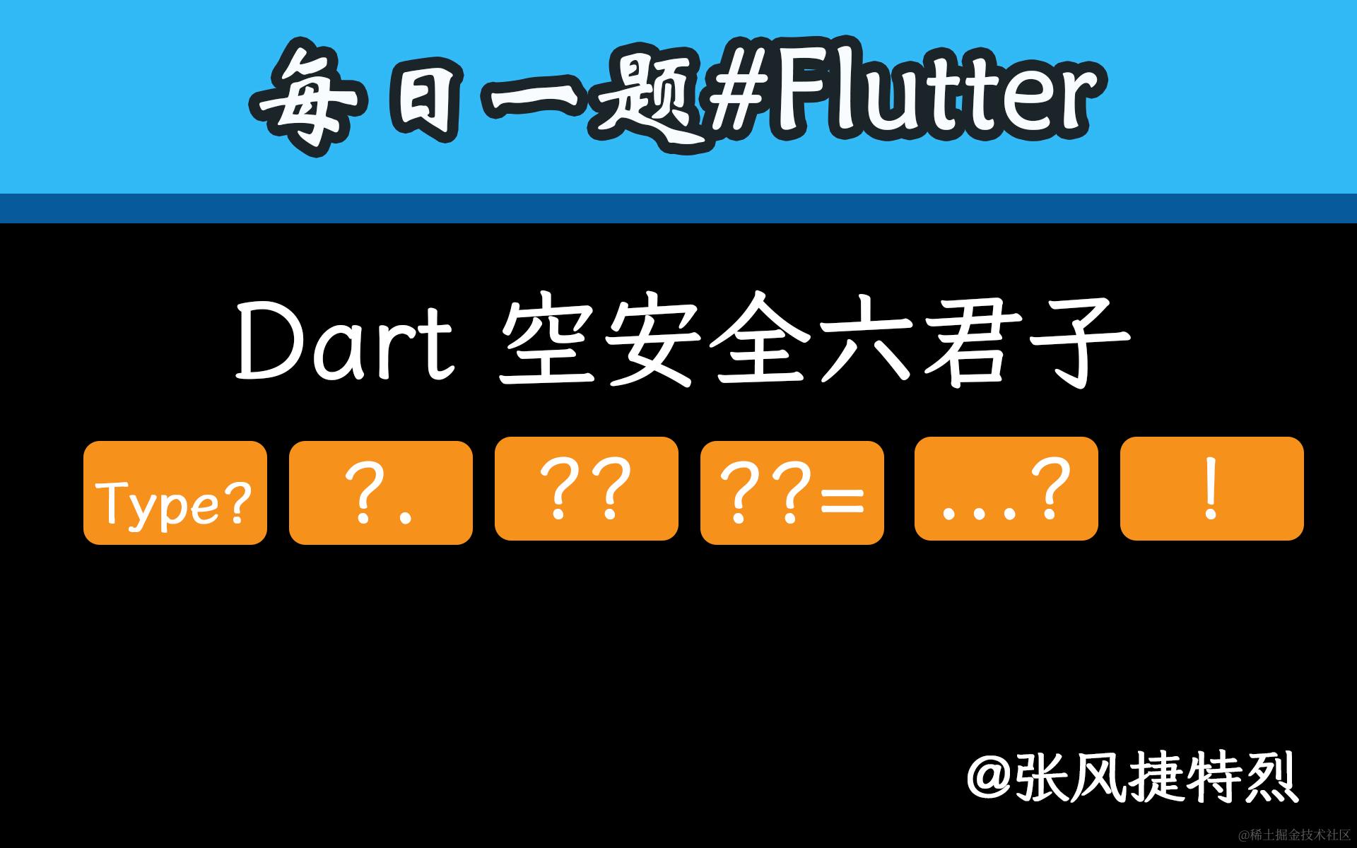 空安全是 Dart 非常重要的一个特性,在语法层面,围绕空安全有 6 个操作符号,它们各自承担着防崩溃、判断空、赋默认值、保证非空等职责,是写出健壮 Dart/Flutter 代码的必修课。本题就将它们一网打尽,聊聊其具体含义