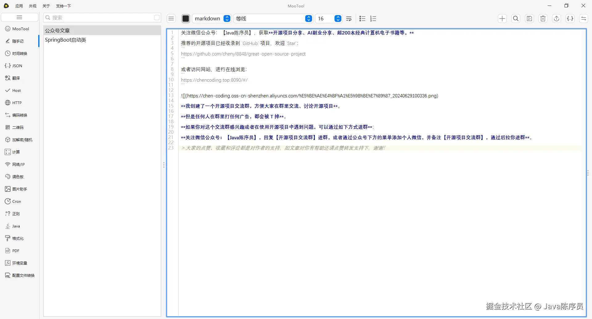 MooTool —— 一款开源、面向开发者的桌面小工具箱,提供多种类的开发工具,基本覆盖日常开发常用的功能需求。采用 MIT 协议开源,支持 Windows、Linux、macOS 系统。