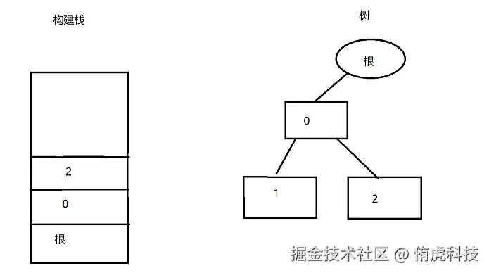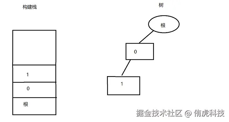 而当我们想要为0添加第二个子节点时,只需要先调用Back,Back会使栈顶元素弹出: